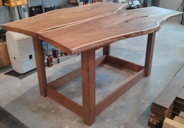 I had the tree sent to a mill and sliced into a flitch of live-edge slabs. I chose the slabs I wanted for the table and had them kiln dried at the mill.